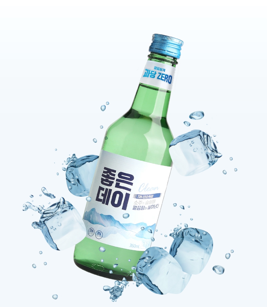 좋은데이는 지리산 암반수를 사용한 부드러운 소주로, 과일 소주 라인업도 풍부합니다.