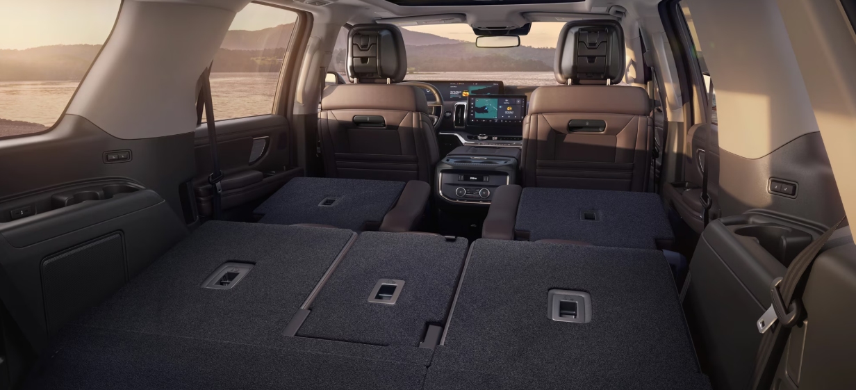 익스페디션은 3열 시트를 접으면 넓은 화물 공간을 확보할 수 있습니다. 특히 익스페디션 맥스는 롱 휠베이스 모델로, 2열과 3열을 모두 접었을 때 차박에 충분한 평평한 공간을 제공합니다. 성인 두 명이 편안히 누울 수 있는 공간은 물론, 캠핑 장비나 침낭을 여유롭게 배치할 수 있습니다.